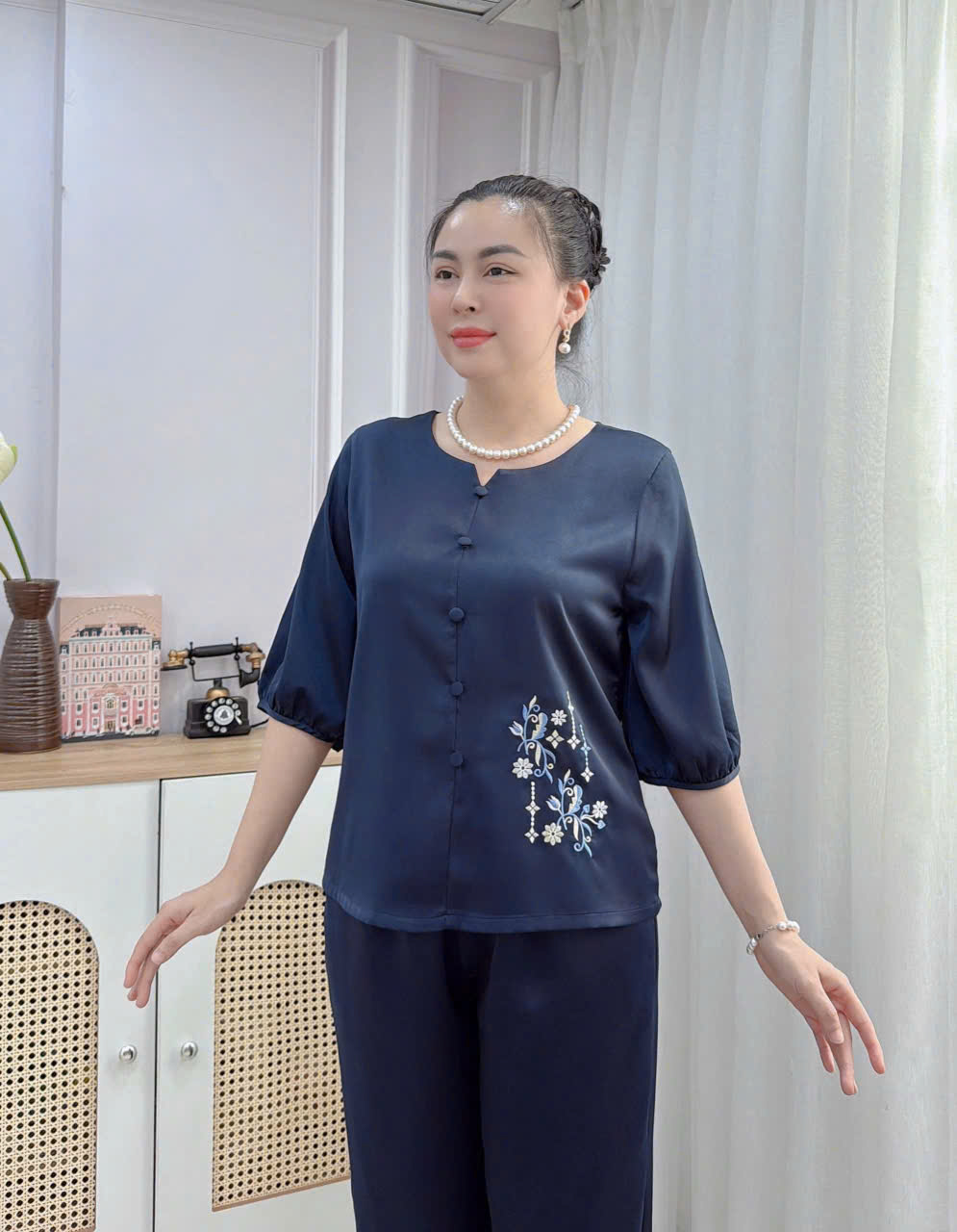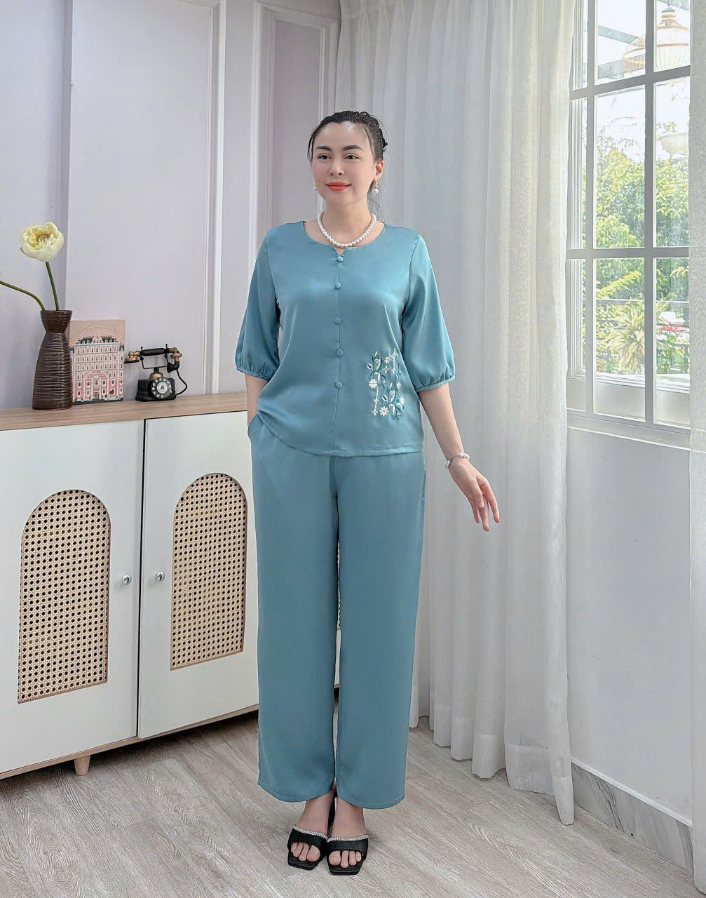 BỘ TRUNG NIÊN CHÁT ĐŨI VÂN MAY HỌA TIẾT THÊU TINH TẾ